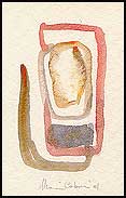 Disegni ed acquerelli ossessivamente dedicati ad una "forma" indistinta che diventa così, per certi versi simbolica, una sorta di "pietra filosofale" dalla quale scaturiscono riflessioni ed emozioni. Maria Caboni (Cagliari 1969) realizza innumerevoli varianti di quella forma, utilizzando nei disegni matite di diversa durezza, quasi a volerne disvelare ogni possibilità percettiva e formale.